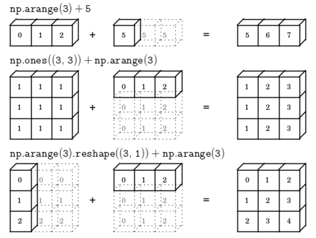 - 이 경우 내부적으로 브로드캐스팅을 통해 shape를 맞춘 후, 벡터화 연산을 수행함